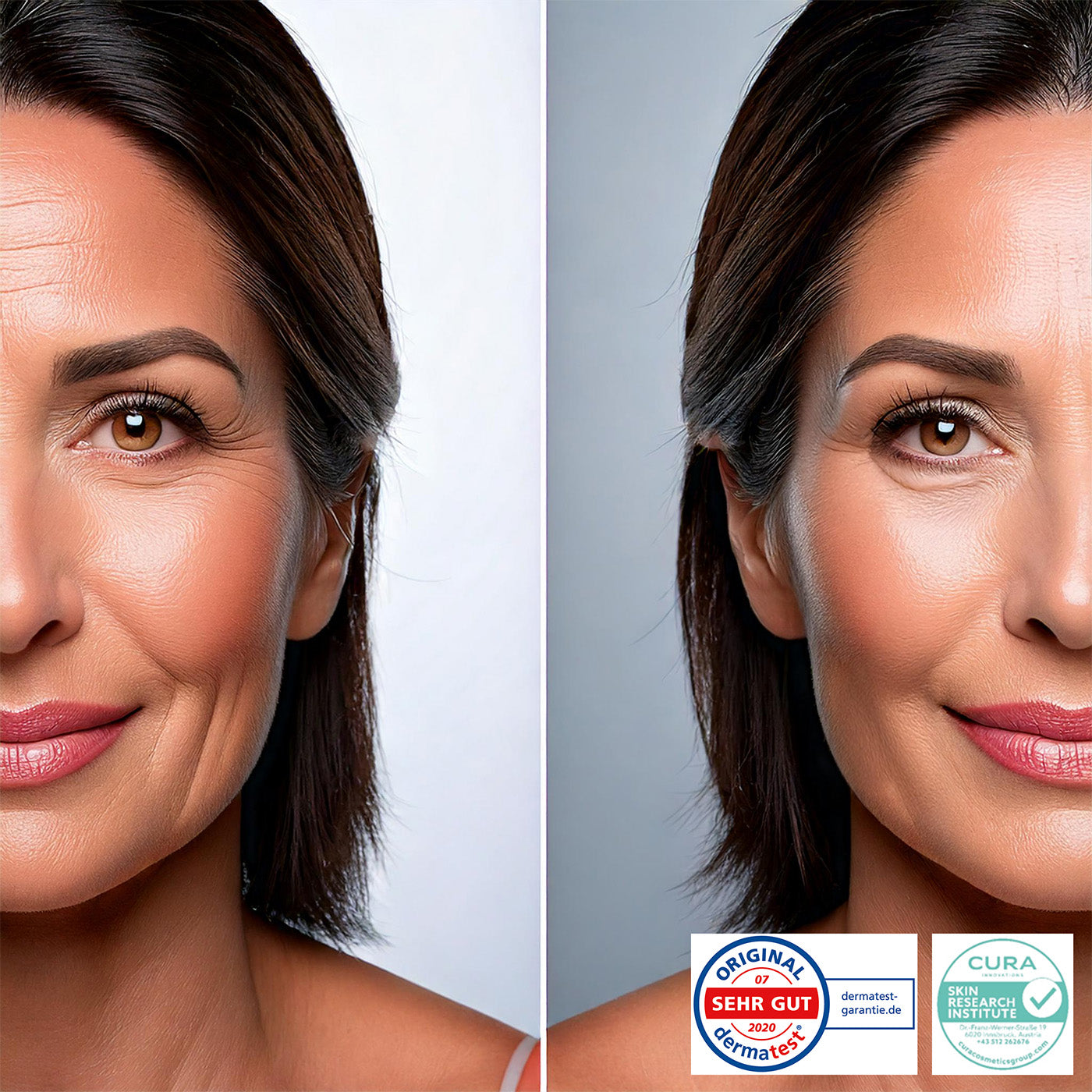 - 85 % der Anwenderinnen verzeichneten eine Reduktion von Mimikfalten, insbesondere in der Stirn- und Augenpartie, nach 4 Wochen kontinuierlicher Anwendung.